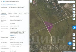 Земельный участок с кадастровым номером 24:39:0122001:449 площадь 21165 по адресу Российская Федерация, Ужурский район, город Ужур, в 80 м на северо-восток от земельного участка по адресу г. Ужур, ул. 2-я Береговая, земельный уч...