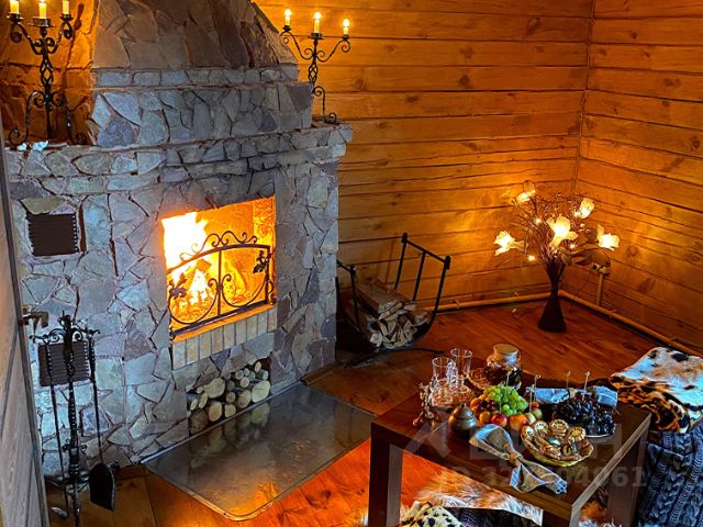 Домик оборудован чугунной дровяной печью со стеклянной дверцей, умывальником с функцией подогрева воды. Есть все необходимое для приготовления пищи (газовая плита, микроволновка холодильник, чайник, кастрюли, сковородки и т.д.) и для сервировки стола (тарелки, чашки, кружки, вилки, ложки и т.д.).