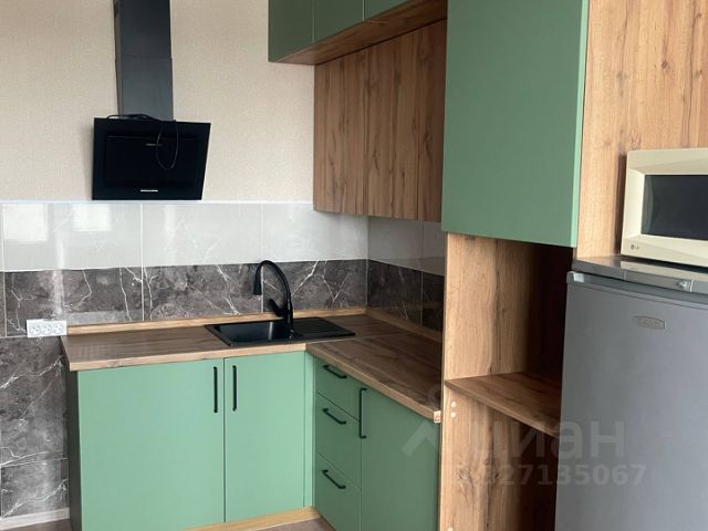 Сдаётся уютная студия площадью 27 кв. м на 15-м этаже 19-этажного кирпичного дома, построенного в 2016 году. Высота потолков составляет 2.7 метра. Окна выходят во двор, что обеспечивает тишину и спокойствие. Квартира с косметическим ремонтом, полностью меблирована. В комнате и на кухне есть необходимая мебель, а также вся необходимая техника: холодильник и стиральная машина. В санузле установлена ванна, что позволяет комфортно расслабиться после рабочего дня. Дом в хорошем состоянии, оснащён двумя пассажирскими и одним грузовым лифтом. Для вашего удобства предусмотрена наземная парковка и мусоропровод. Рядом с домом находятся детские сады, клиники и магазины, что делает проживание здесь особенно комфортным. Удобное транспортное сообщение позволяет быстро добраться до любых районов города. Аренда квартиры осуществляется напрямую от собственника, без комиссии. Залог и предоплата обсуждаются индивидуально.